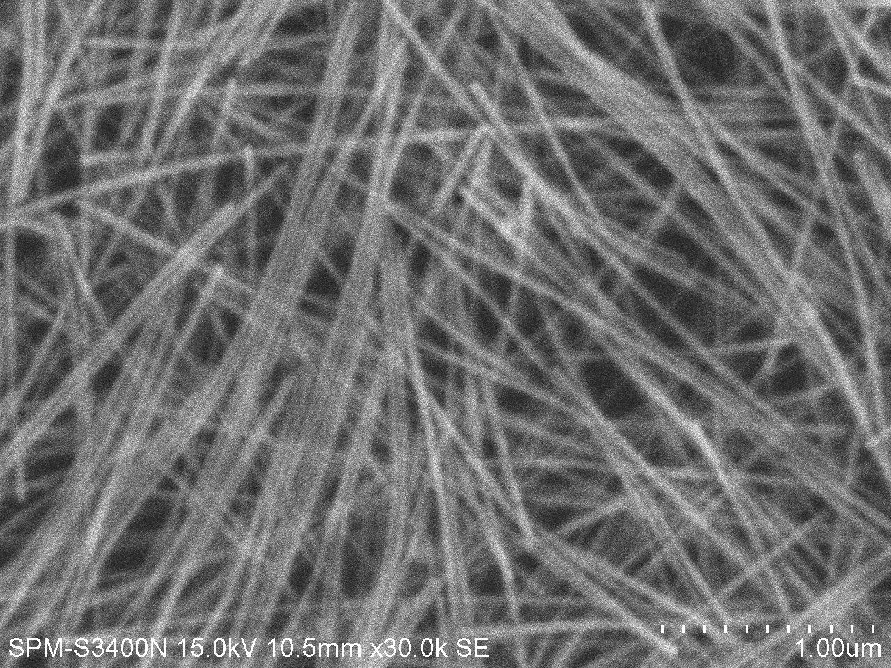银纳米线 (Silver Nanowire) 是一种纳米尺度的银线。银纳米线除具有银优良的导电性之外,由于纳米级别的尺寸效应,还具有优异的透光性、耐曲挠性。因此被视为最有可能替代传统ITO透明电极的材料,可满足 GF 和 GFF 集成式触控面板、固定曲面式 LCD 和 LED 显示屏、电子纸以及可挠曲式 OLED 显示屏及照明设备的生产需求,尤其在大尺寸器件上的应用优势更加明显。此外,由于银纳米线的大长径比效应,使其在智能窗膜、透明电磁屏蔽膜、导电胶、导热胶等方面也具有潜在的应用前景。
